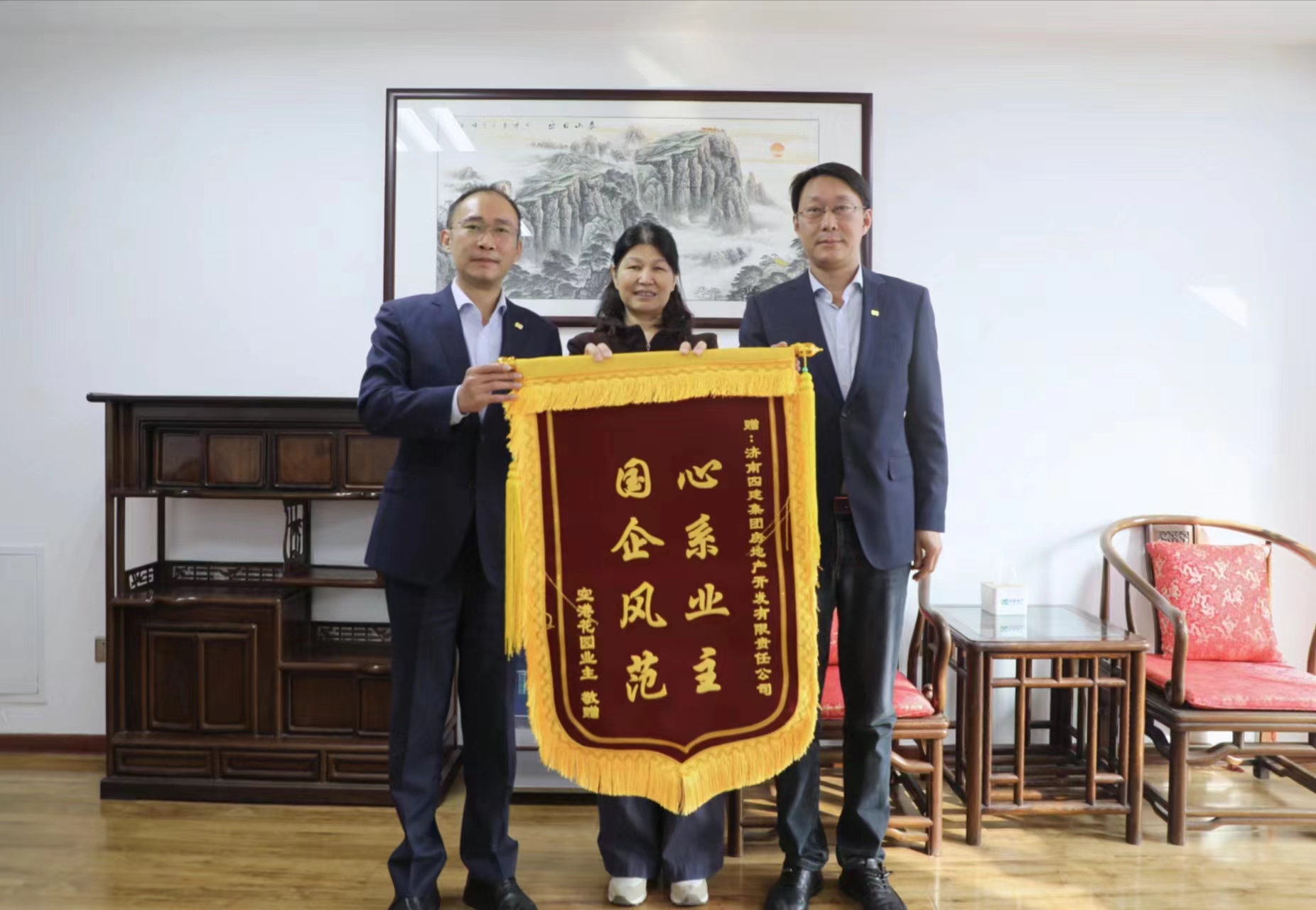 11月1日下午两点半,空港花园业主手捧两面锦旗来到四建地产办公楼,对四建地产及工程管理部郭帅同志在维修服务中展现的真诚负责、国企担当表示感谢。